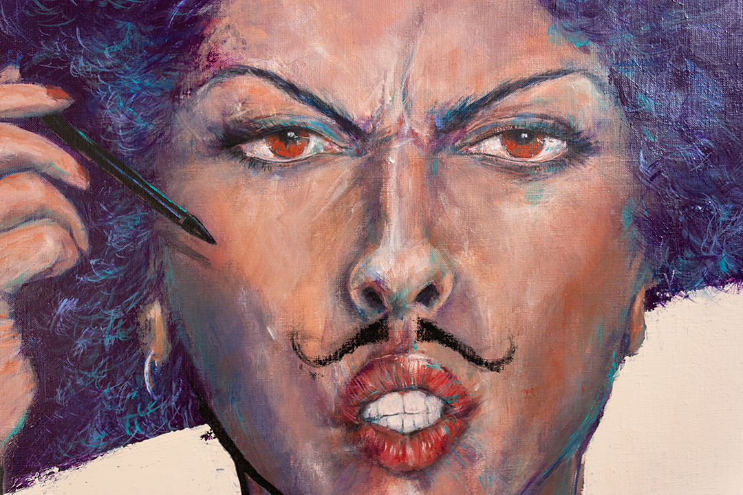 Un poil de pouvoir Acrylique + pastel sur châssis toile linAcrylic + pastel on linen canvasFormat 60 x 60 cm.2025 DétailDetail Retour à la Galerie / Back to Gallery